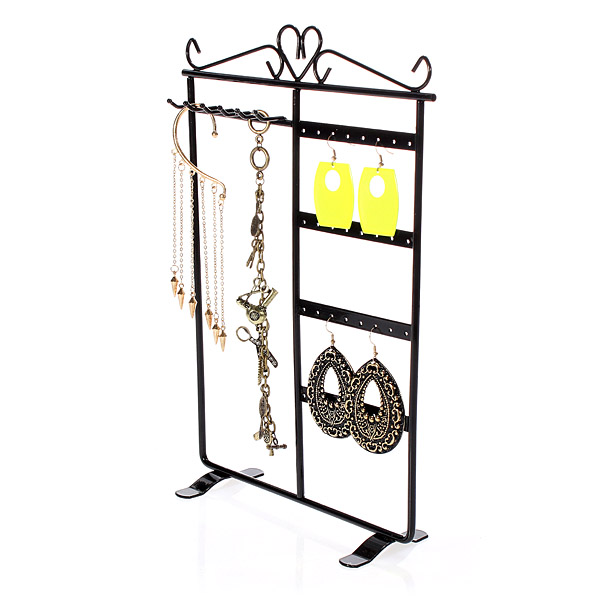 Black Jewelry Display Rack 6 Hooks 32 Holes Earrings Necklace Stand
